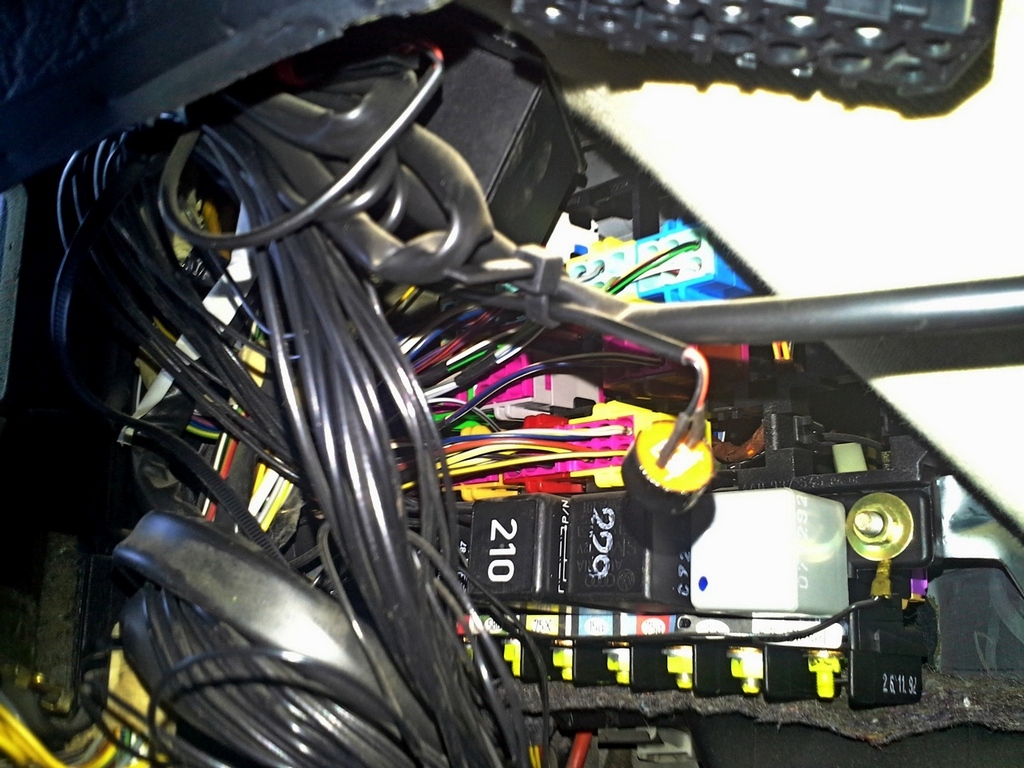 In that model(1994) thin wires Green-Black, and Green-Red (from the switch plug) goest to fuses 5 and 6 and they supply left and right side park lights. Yellow-white should supply fog lamps, and thing top gray should be for dash backlight and power to the fog lamp buttons.