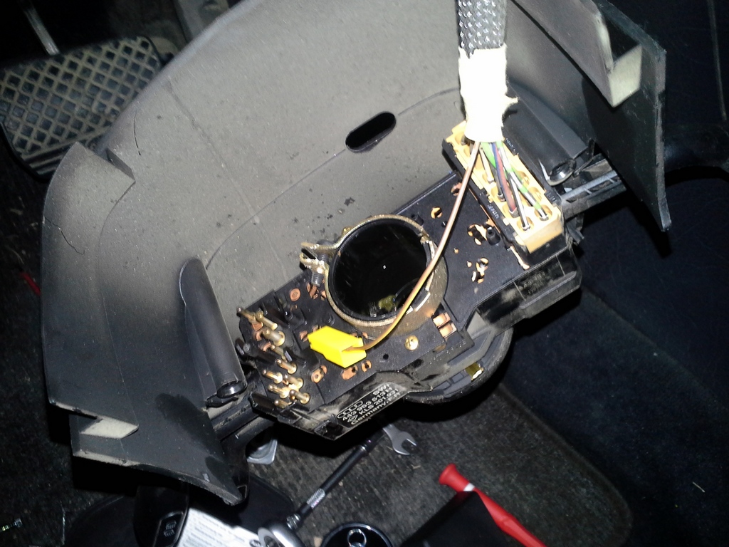 - remove the steering wheel(thin screw driver will help with logo cap)