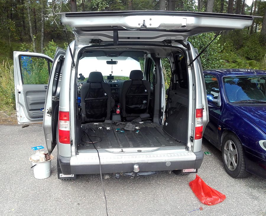 Have you ever thought about improving the sound in cargo van? Me neither to be exact, but here is it. Mate of mine ask if we can do something fast. Well, improvement was: SUB woofer with AMP, new stereo, speakers and few hours lost.