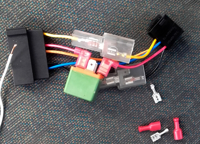 * Player - well, there is second stone on your way. The OEM plugs are not ISO type. The good news here - in the shops you can find suitable extension. The bad news - that +12V and GND power supply cables (thick ones) are in that configuration that you have all the time power supply to the memory and player. In other words - every time you need manually to turn off / on the player instead with the ignition key. Control wire - yep, present. Solution - relay. Well, in my defence can say that should of put something small instead that one (40A) on the picture but didn`t find one.. :