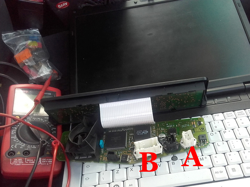 and with the unit already open and board exposed, I start to measure are there any voltage or data.